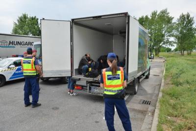 15 szíriait és 9 irakit - közöttük két nőt és egy gyermeket - talált a rendőrség egy teherautóban az M1-es autópálya győri elkerülő szakaszán, a szerbiai sofőr hűtőkocsiban akarta Ausztriába csempészni a menekülteket.