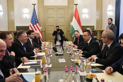 Szijjártó Péter szerint mivel a magyar kormány a kölcsönös tisztelet talaján áll, elvi alapon vétózott meg minden uniós döntést,, ami az Egyesült Államok szuverén külpolitikai döntéseit bírálta volna. Ugyanakkor őszinte külpolitikát is folytatunk, így Szijjártó Péter szerint könnyen megvitathattak olyan kénye ügyeket is, mint Ukrajna, a Kárpátaljai magyarok helyzete, a Kínához, Oroszországhoz fűződő viszony. Szijjártó szerint Nyugat-Európában elképesztő képmutatás megy Oroszország felé, a felszín fölött megy a kritika, miközben komoly üzleteket kötnek Moszkvával. A magyar kormány bővíti koszovói misszióját és részt veszünk idén a Balti államok légterének védelmében.