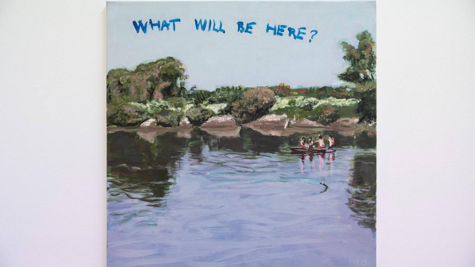 A tárlat témáját különösen két festőművész, Nemes Csaba és a 2018-ban elhunyt Birkás Ákos vásznai teszik átélhetővé. Nemes több képén is a környezeti pusztulás veszi uralma alá a tájat: az egyiken árvíz, a másikon erdőtűz, míg a legújabb képén már a pandémia sújtja a környezetet. Mindegyik kapcsán feltehető az a kérdés, melyet Nemes a tárlat fő képén intéz a befogadóhoz. Ezen egy baljós árnyalatú tavat látunk, rajta egy csónakban pár embert, körülöttük fákat, felettük az égen pedig kék betűkkel a What will be here? (Mi lesz itt?) feliratot. A környezet Nemes képein tehát egyfolytában változik, a kérdés csak az, mi épül éppen a kivágott fák és a lecsapolt tavak helyén.