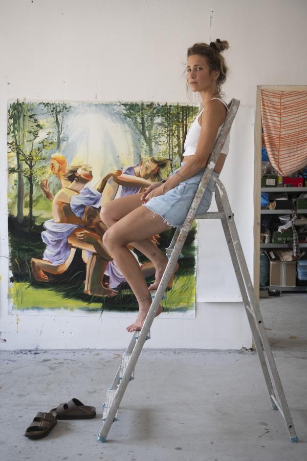 A harminchárom éves Rózsa Luca Sára abban az évben megnyerte az egyik Eszterházy Art Award elismerést, az utóbbi, Özönvíz című képét pedig beválasztották a Magyar Nemzeti Galéria Lépésváltás című tárlatába, mely az 1945 utáni magyar művészetet mutatja be. Az alkotó azóta külföldön is sikereket ér el: e héten nyitották meg Hongkongban, a Double Q Galleryben a Five Deep Breaths (Öt mély lélegzet) című kiállítását, melyen az emberi élet kezdete és vége közti állomásokat mutatja be, majd szeptemberben a Los Angeles-i Steve Turner Galleryben lesz tárlata, melyen a négy elemmel fog foglalkozni. Ezeket az új képeket akkor festette, amikor meglátogattam őt a műtermében.