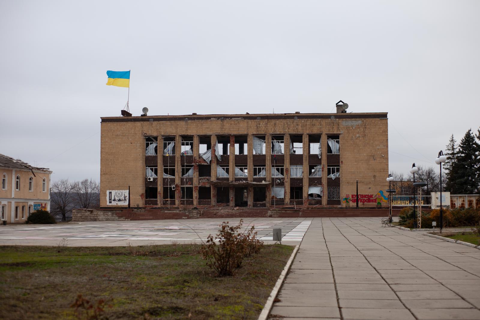 Az üzlete előtt lévő aszfalton tátongó lyukak és a repesz szaggatta buszmegálló ad rá magyarázatot, miért van zárva az egykori boltok nagy része. A várost állandó tűz alatt tartják az oroszok, hol egy tüzérségi lövedék, hol egy drón, máskor egy siklóbomba csapódik be. Villany, gáz már csak a város nyugati felében van, víz nincs, viszont a lakók szerencséjére sok, jó minőségű nyilvános kutat találni a városban.