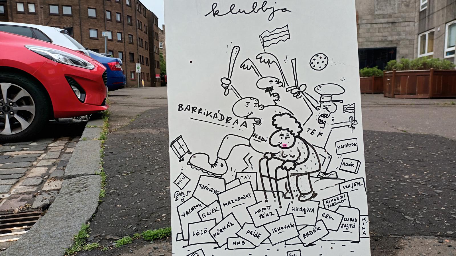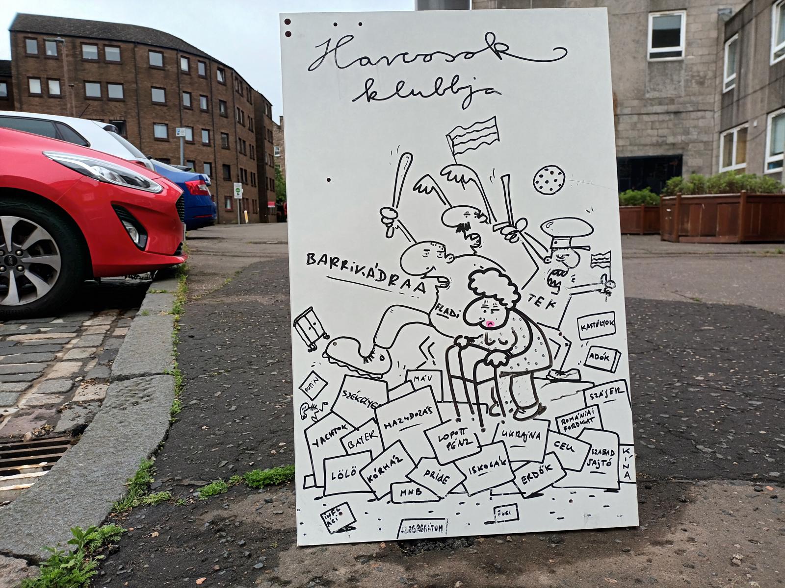 Szerzőnk, a karikaturista-graffitis Fekete Valér Sior itthon történelem–francia szakos tanár volt, új hazájában, Skóciában sokféle munkát elvállal: kertészkedik, bontásokon vesz részt, dekorál, tetőt javít. Szabadidejében a kalandos életükről, a beilleszkedésükről, a magyarországi emlékekről ír. És rajzol mindenről, legyen az akár az óhaza, akár a nagyvilág közéleti eseménye. A skótok egyelőre tűrik, igaz, alkotásai nem igényelnek anyagi támogatást. Karcolható felületek pedig szép számmal vannak arrafelé is.
