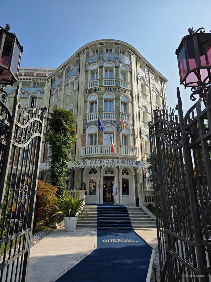 A lidói kikötőből a tengerpart felé sétálva jó kedélyű, estélyit viselő nők libbentek ki egy díszes épületből, amin az Ausonia Hungaria felirat díszelgett. Kiderült: a szálloda 1907-ben épült, majd 1913-ban vált ikonikussá, Luigi Fabris keramikus színes, virágos díszítésének köszönhetően. A név a történelmi épület Velencéhez és Magyarországhoz fűződő kapcsolatát tükrözi. A 19. század végén és a 20. század elején ugyanis a város népszerű úti cél volt a magyarok körében. Egy ötcsillagos, magyar történelemmel rendelkező szálloda, a velencei luxusturizmus sarokköve. Nem tudni, vajon szállt-e itt meg bárki a Bezos-esküvőre jövet, de nem lenne meglepő, ha igen. Mi inkább továbbsétáltunk, és gyorsan elvesztünk a velencei forgatagban.