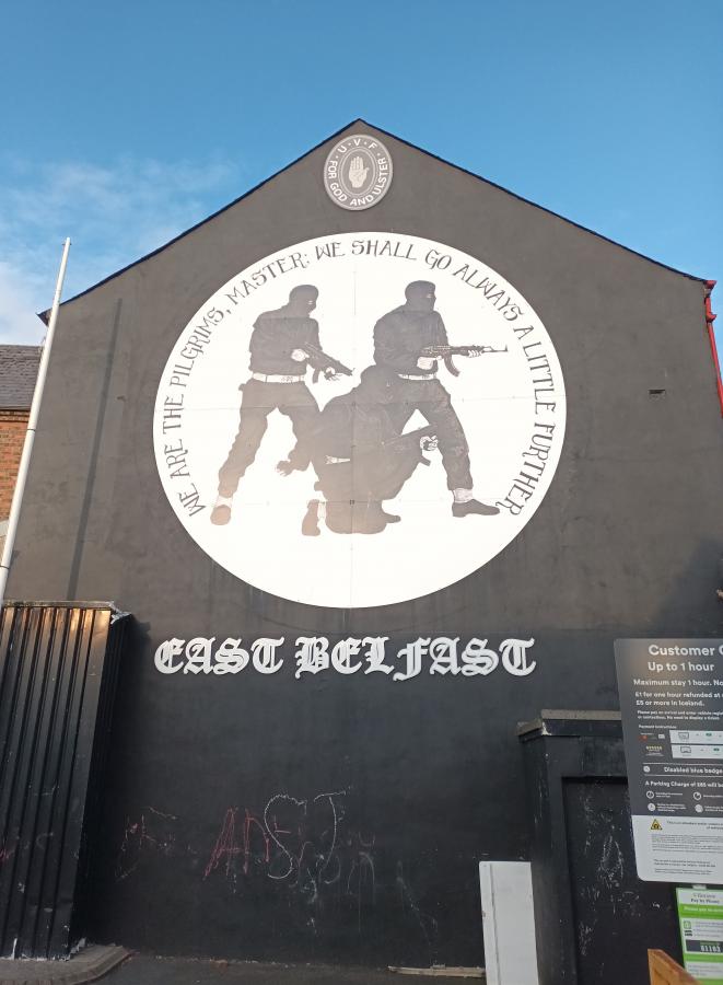 Belfastban kicsit eltévedtünk, a klasszikus se eleje se vége, stílustalan brit utcák útvesztőjében csavargunk. A helyi Kádár-kockák megfelelői a vörös téglás sorházak az idegbajba kergetnek, minden város ugyanúgy néz ki lakóövezetileg. Végül megtaláljuk barátaink házát, letáborozunk pár napra. A pár napot maximálisan kihasználva rengeteget mozgunk. Én minden nap elmegyek futni is, de mindennap van tervezett csavargás is. Titanic múzeum, sok szabadtéri szobor, hihetetlen mennyiségű graffiti alkotás a falakon, egy hadihajó a Jütlandi csatából, galériák színesítik a napjainkat. Nem lehet nem úgy közlekedni, hogy a múlt nyomasztó árnyai ne vetüljenek ránk. Természetesen tanultam az ír történelemről az egyetemen, tudtam, hogy létezik IRA és láttam az Ördög maga című filmet a belfasti eseményekről, de élőben orrba ver az a komor múlt. Mindenhol hatalmas politikai graffitik, rajtuk mozgalmi jelmondatok, fegyveres emberek, önvédelmi fiatal önkéntesek felhívásai, komor vonások, fegyveres felvonulók.