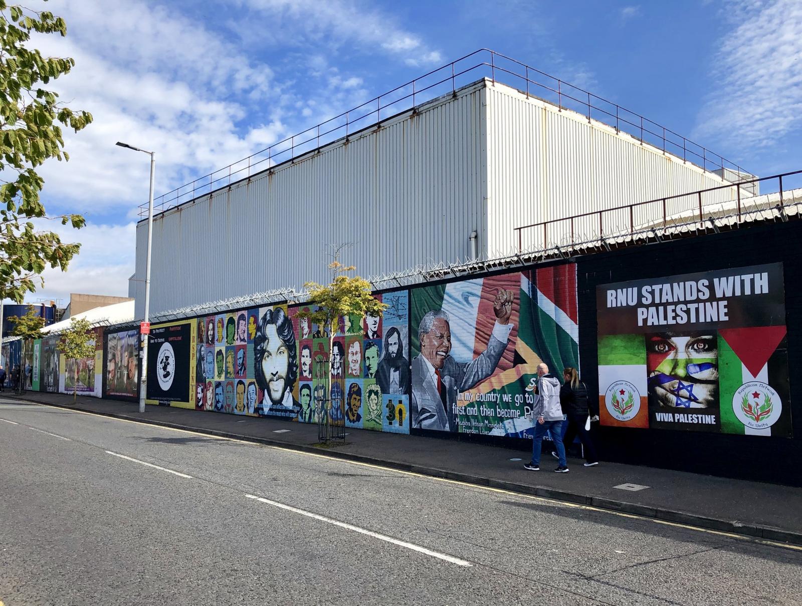 Vannak közöttük igen idősek is, még a nyolcvanas évekből, láthatóan senki nem firkált beléjük, gondolom, szeretnek élni az ottani graffitis kamaszok… A feliratok fennen hirdetik, hogy csatlakozzon mindenki X avagy Y oldalhoz. Más dekorációk azoknak állítanak emléket, akik az adott helyen haltak meg, 13 évesen felrobbantott kislány képe, őt 1993-ban ölték meg, két férfi fényképe, akiket 1970-ben végeztek ki az IRA erői, másik 28 embert megsebesítve.