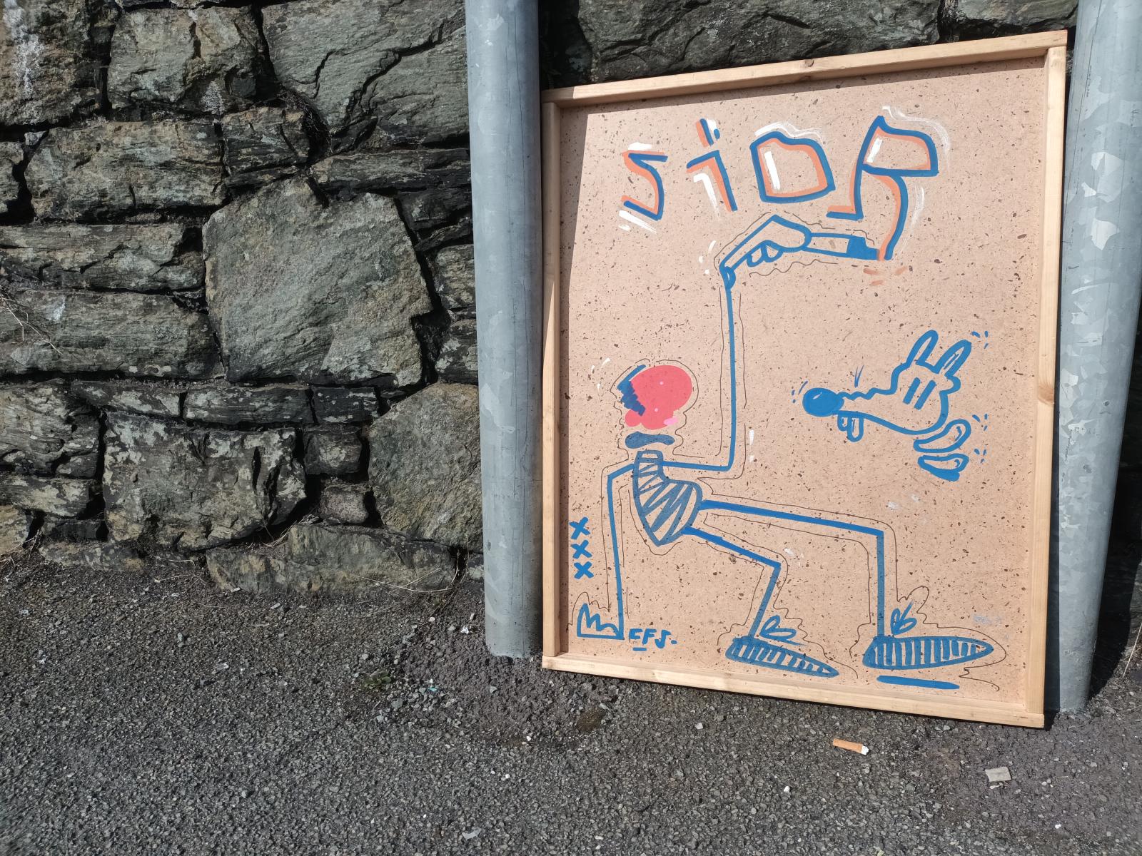 Ahogy sétálunk, elmondja, hogy az egyik rész a festésnek van, de a büfé melletti újonnan fehérre meszelt részre csak filcet szeretnének, mert ide az üzeneteit írja az a látogatócunami, amely naponta ingázik a belváros és a kerület között. Üzenetek százezrei tarkítják a falat, a fehérre kent részt is, de a graffitikre is firkáltak sokan filcekkel. Nézem a graffitis falat, jó pár nagyágyút ismerek az Instagramról, erős a felhozatal. A családomnak odaadom a filces zsákot, én fogom az egyetlen fekete sprémet, nem akarok brillírozni, csak valami kis egyszerűt. Alkalmi partnerem felajánlja, hogy csinál pár fotót rólam, elveszi a telefonom, megint meggyújtja a cigijét és nekilátunk. Egy perc alatt megfestem a kis emberkémet arra az apró helyre, ahol nem volt másnak munkája, bedobom a sprét a hátizsákomba. Új barátom mellé állok a falnál, nézzük a semmit, jól esne egy slukk a cigiből, de erősen szuggerálom magam, ez csak illúzió, nem lehet csalni, azonnal visszaszoknék.