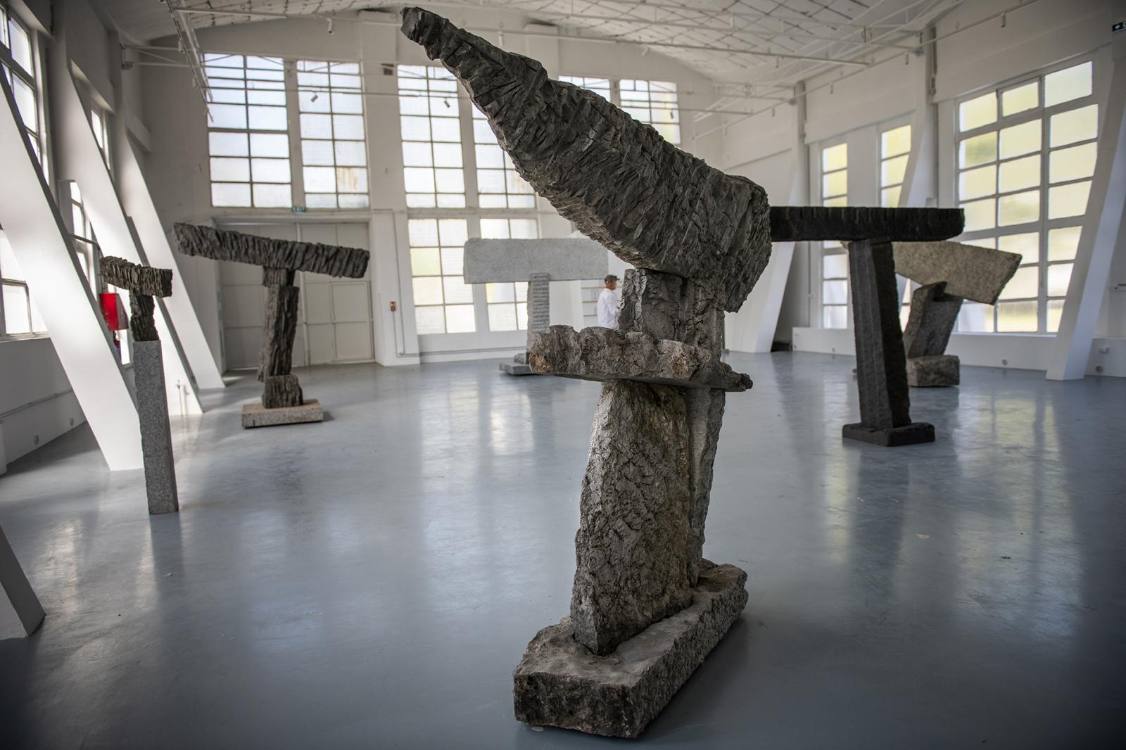 – A szobor sosem magányos, az mindig egy kulturális térben áll, és megszólítja a befogadót és a közösséget – mondja Mohácsi András, miközben a nagy méretű kőtömbökből összerakott absztrakt szobrait nézzük, és járjuk körbe a Kahan Art Space Buda nevű kiállítótérben rendezett kiállításán. A művek jól passzolnak a nagy belmagasságú térbe. Hófehér falai és a széles ablakokból beáradó fény még inkább kiemelik a szobrok robusztus voltát, melyek magára a térre is kihatnak. A művek pedig az alkotói folyamatról is mesélnek, hiszen jól látható, miként illeszkednek egymáshoz az egyes kőlapok, melyeken kivehetők a véső- és fúrónyomok is.