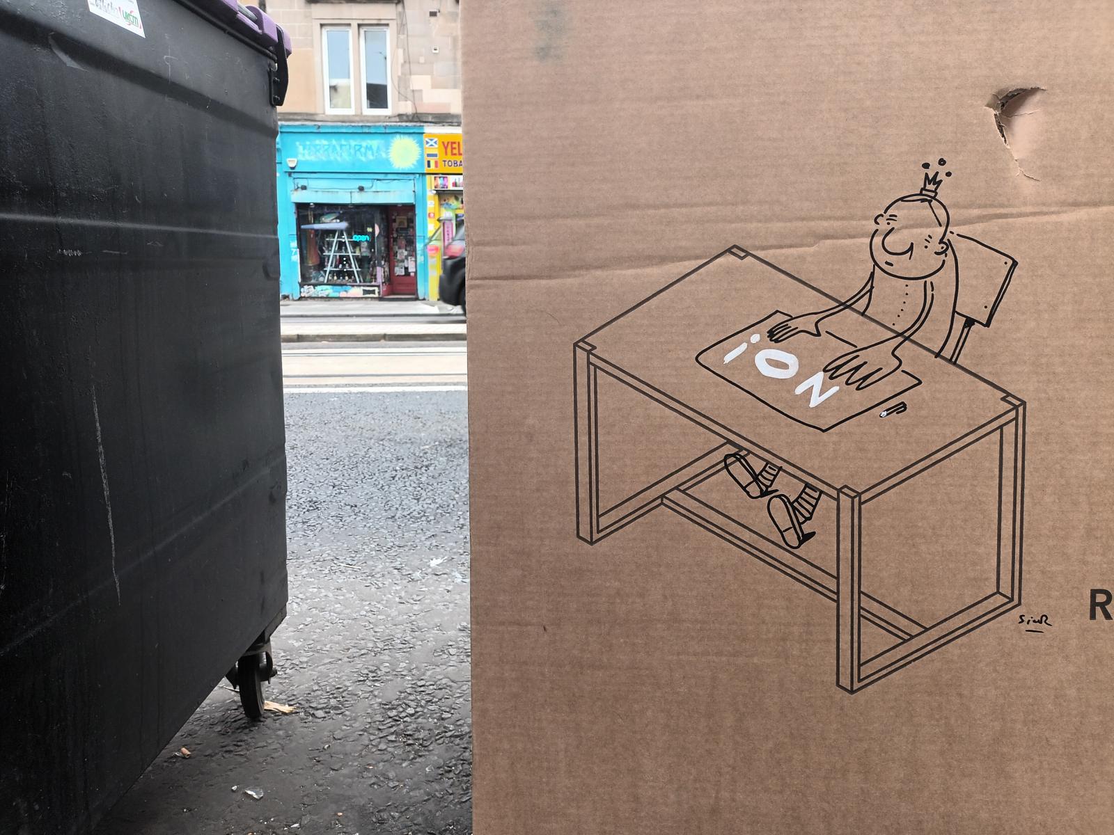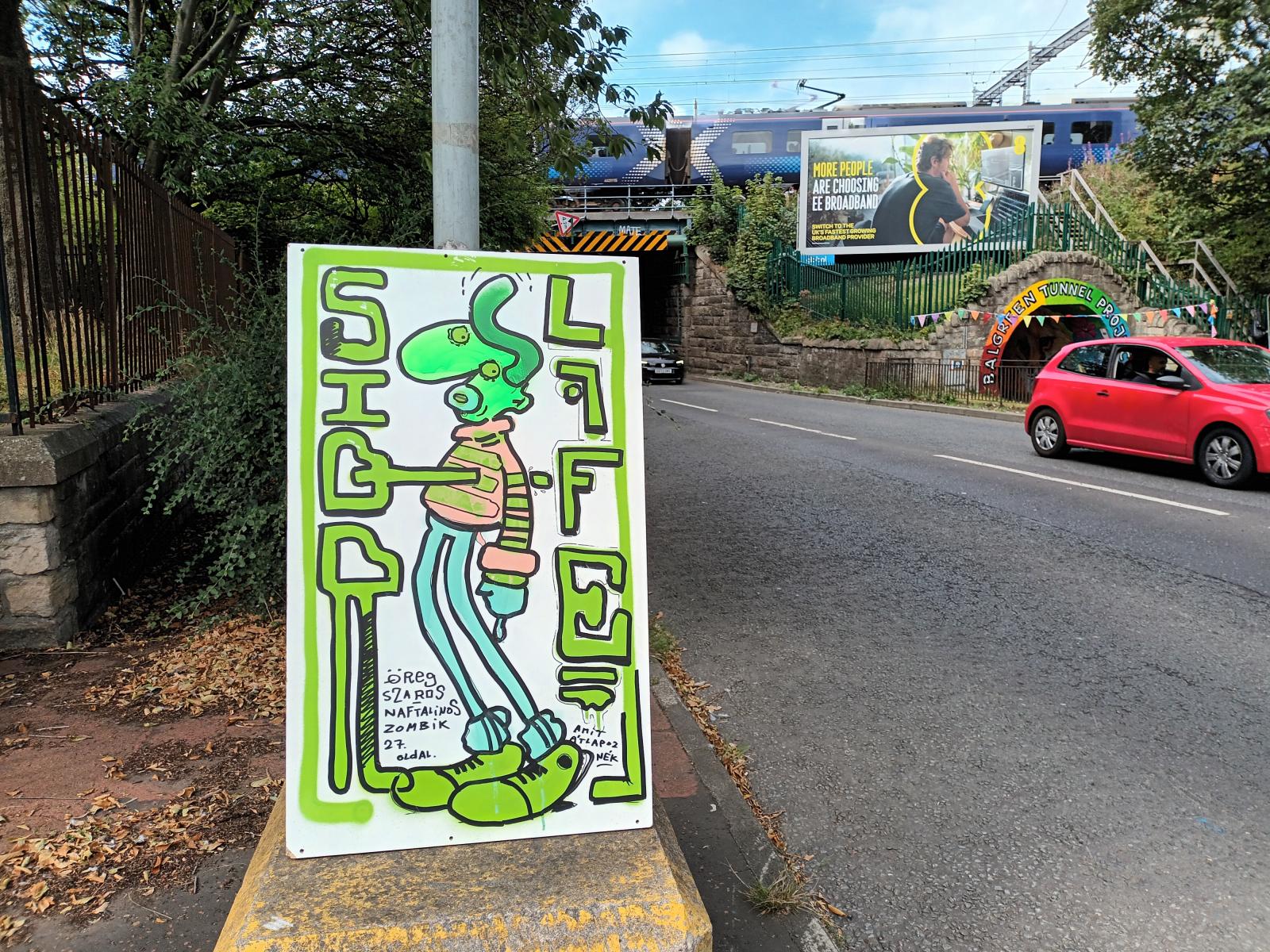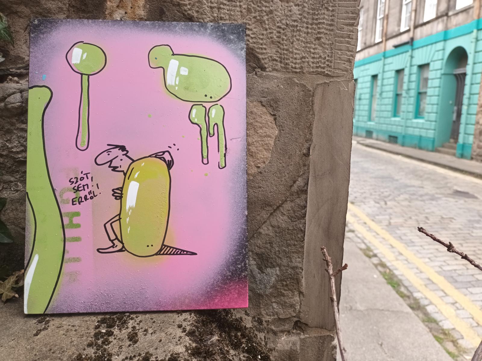 Fekete Valér Sior Skóciában élő karikaturista-graffitis szerzőnk történelem–francia szakos tanárként dolgozott itthon, közel egy évtizede ment el családjával Magyarországról. Amikor éppen nem az ügyfélköre megbízását teljesíti kertben, ház körül, akkor rajzol. Figyeli a közéletet, a politikát, és ami minderről eszébe jut, abból alkotás születik filccel, spray-jel, papíron, falon, deszkán.