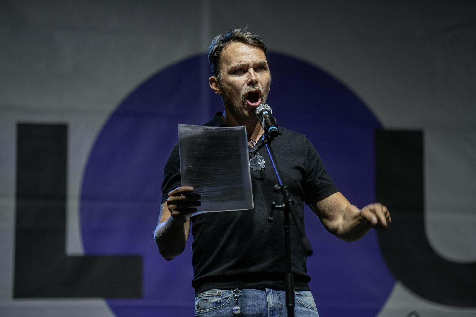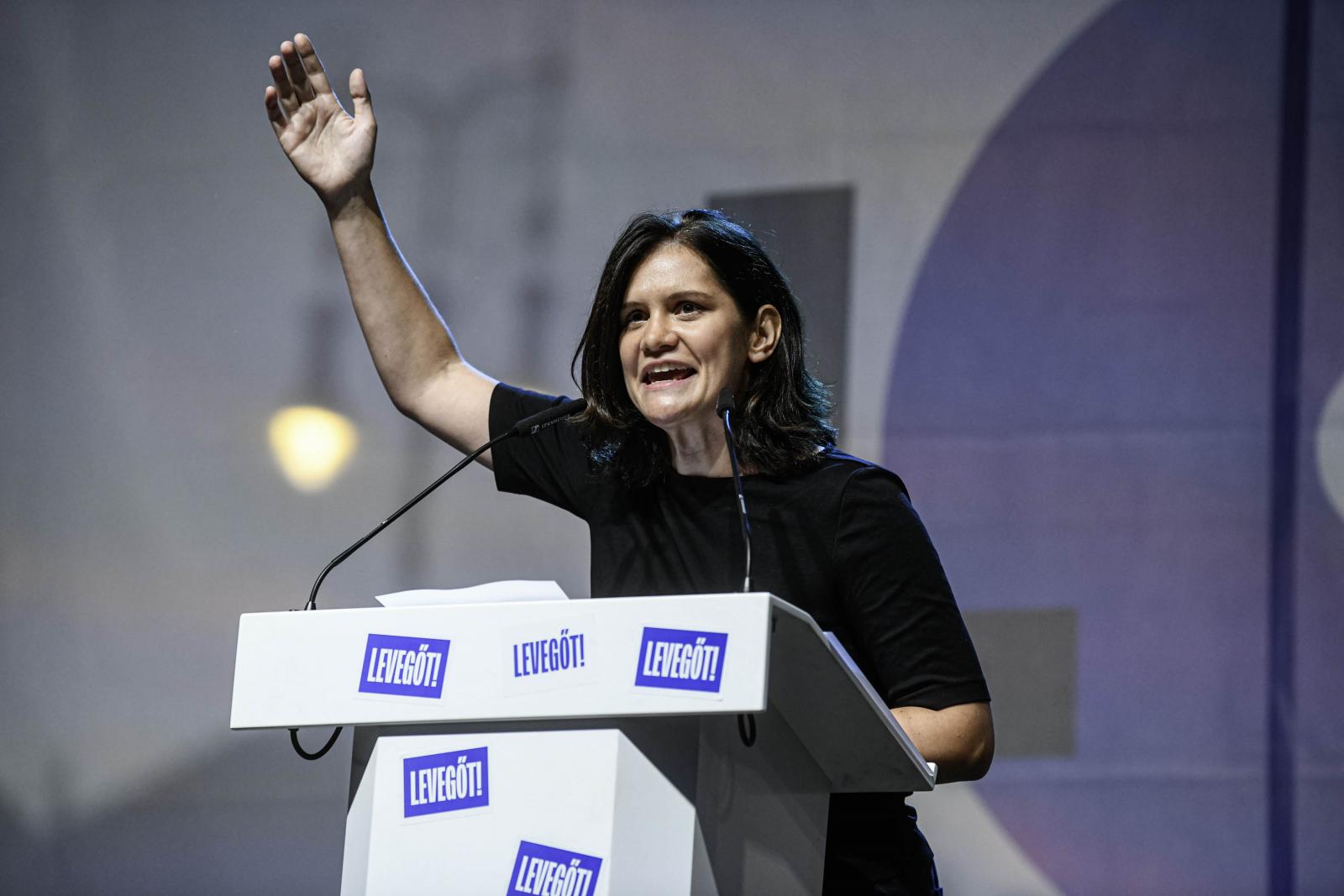 A korábbi momentumos influenszer beszéde alatt felharsant a tömegben a „Mocskos Fidesz” rigmus.