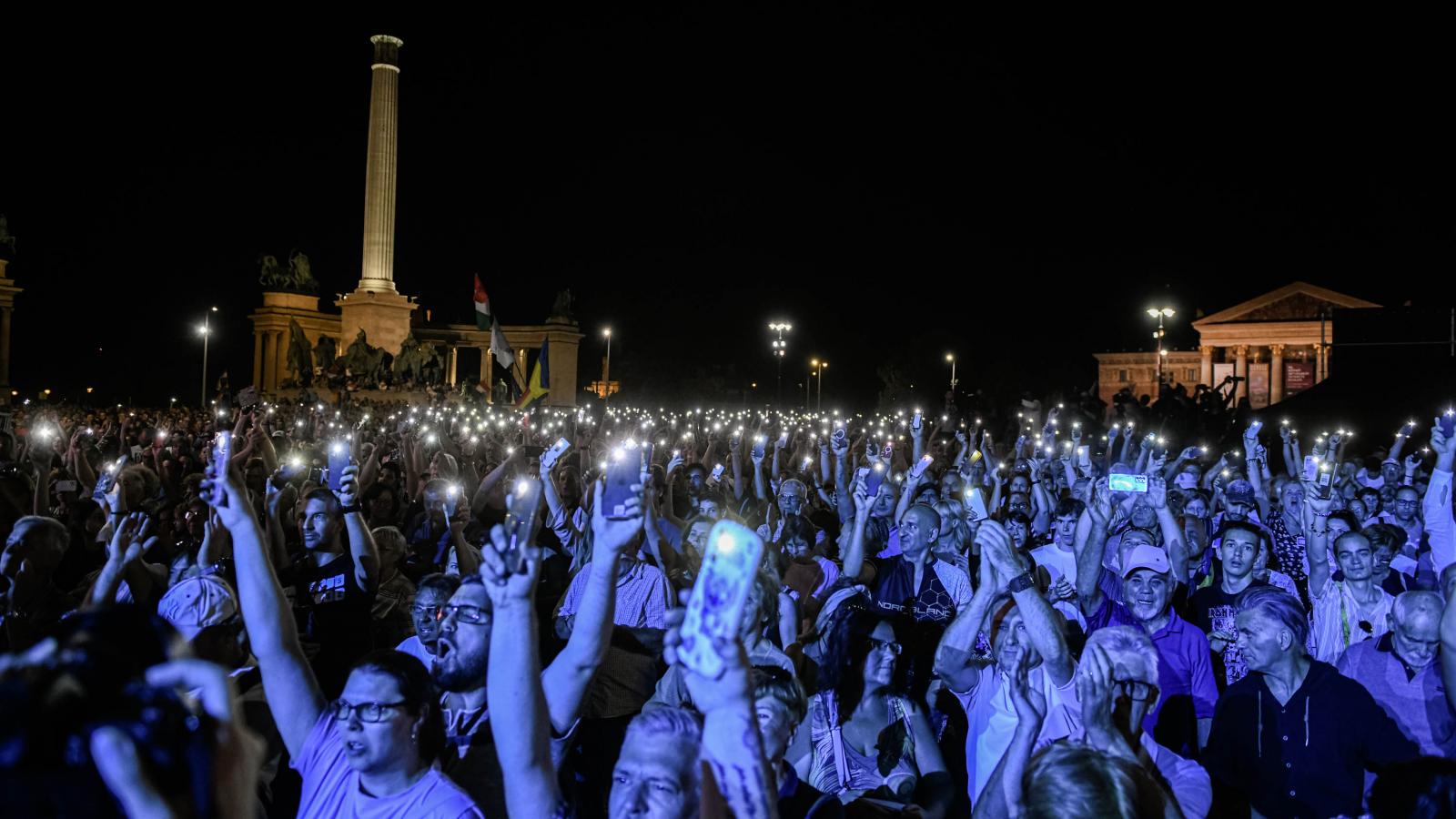 „M.csk.s F.d.sz!” – a kisföldalattira felszállva rögtön ez a felirat fogadott egy pólón. A Hősök terénél csaknem teljesen kiürült a zsúfolt szerelvény, a Szépművészeti Múzeum oldalán felállított színpadnál háromnegyed órával a kezdés előtt már ezres nagyságrendű tömeg gyülekezett. A közeli Lendvay utcában lévő Fidesz-székházat rendőrsorfal védte, pár száz méterrel odébb, a Városligeti Műjégpályánál rendőrségi kisbuszok sorakoztak.
