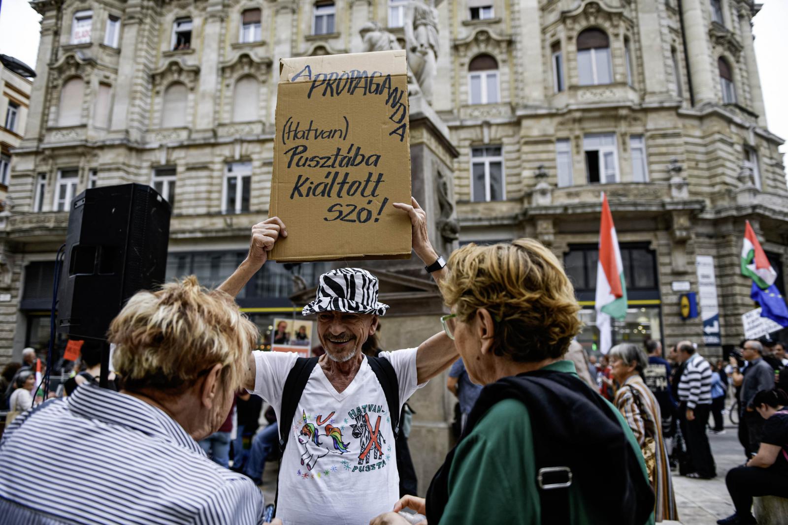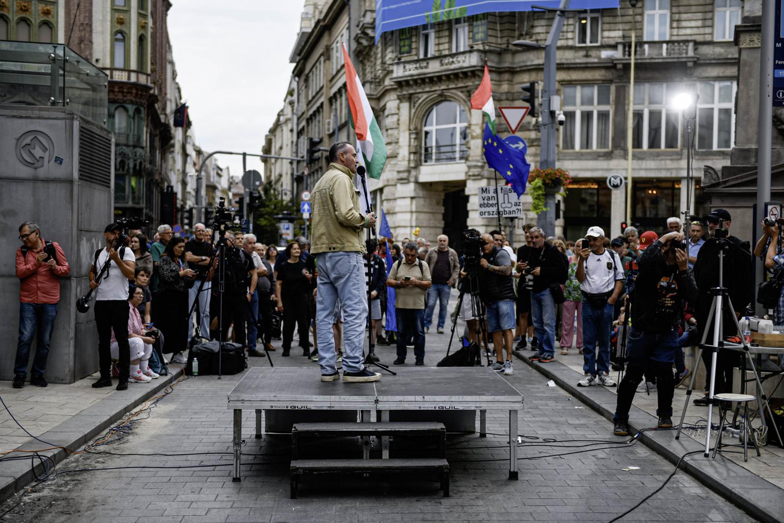 Utána Polyák Gábor, az ELTE Művészetelméleti és Médiakutatási Intézetének tanára mondott beszédet néhány száz ember előtt. Ő arra emlékeztetett, hogy a Fidesz 2024-ben fél év alatt 3,5 milliárd forintot, idén eddig 2,4 milliárdot költött el a Meta és a Google felületein.