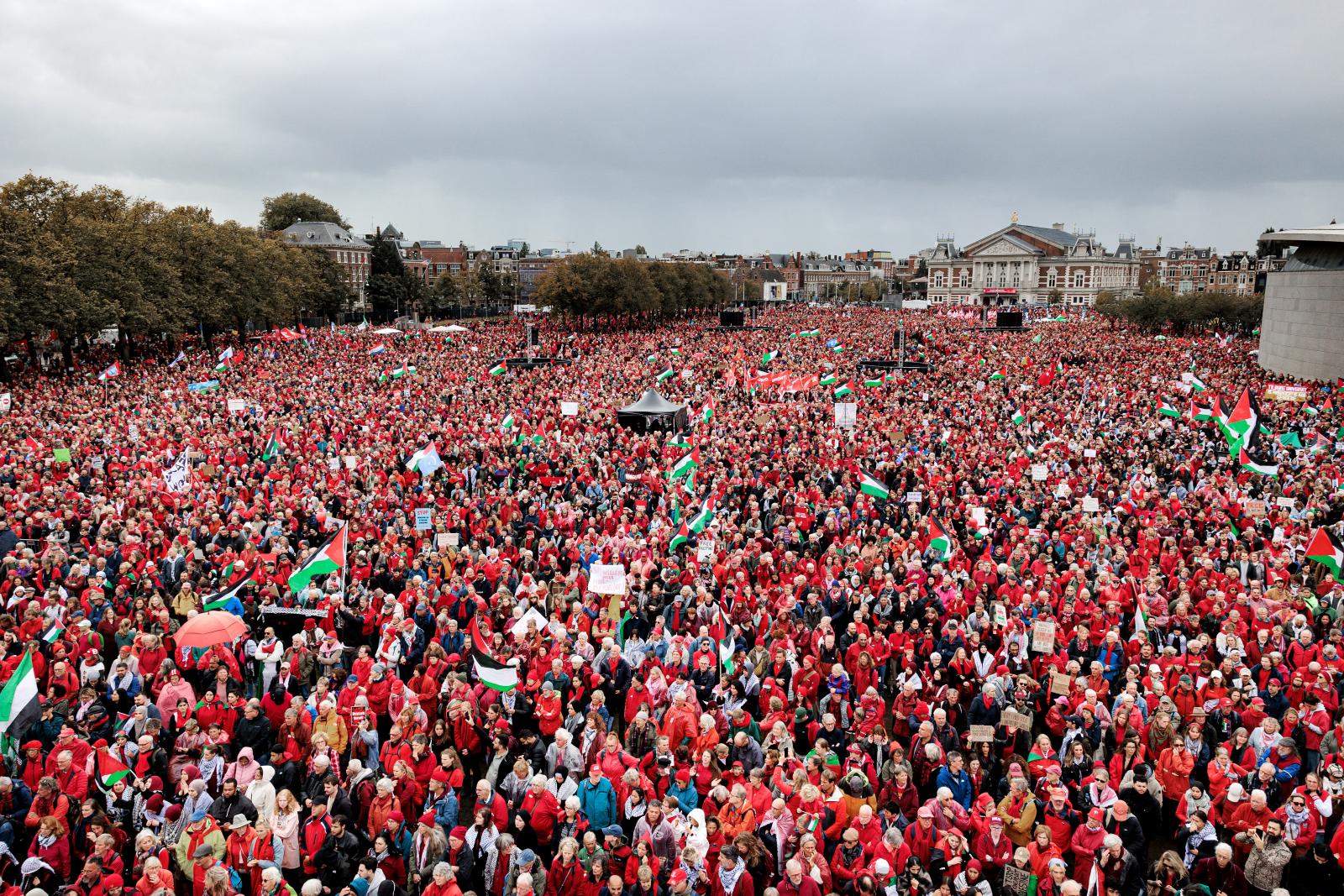 A szervezők becslése szerint mintegy 250 000 résztvevő vett részt a megmozduláson, amit a helyi rendőrség is megerősített. A demonstrálók többsége vörös ruhát viselt, ezzel fejezve ki szolidaritását a Gáza ostromával szembeni szimbolikus „vörös vonal” mellett. A „vörös vonal menete” nevű esemény a májusban, Hágában tartott nagyszabású demonstráció folytatása volt, és néhány héttel Donald Trump amerikai elnök béketervének bejelentése előtt szervezték meg. A PAX Netherlands képviselői hangsúlyozták, hogy Gázában a béke megteremtésében bíznak, ugyanakkor kiemelték: Trump javaslata nem befolyásolta eltökéltségüket.