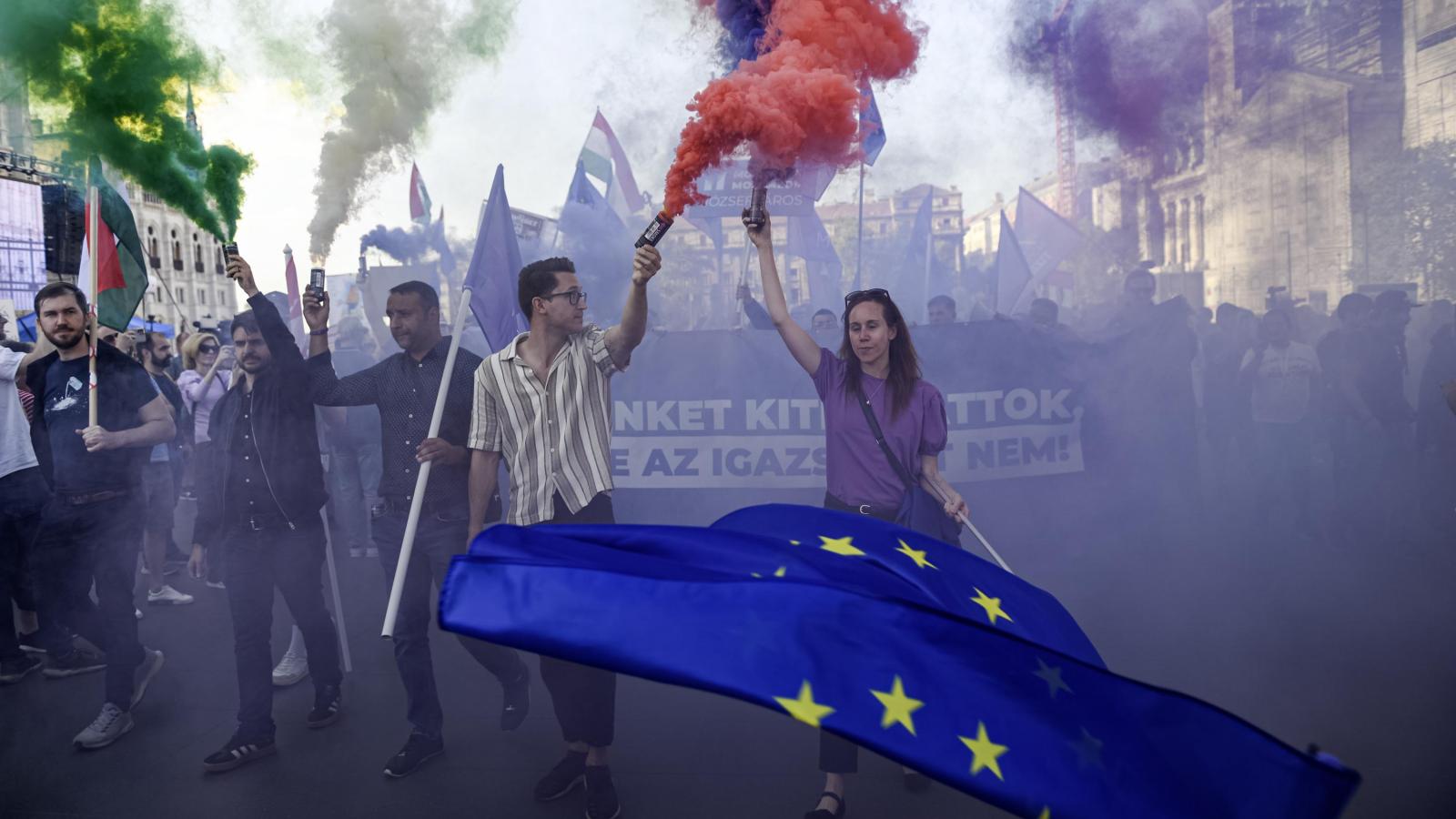 Az nem derül ki a bejegyzésből, hogy melyik demonstráció volt az, ahol az aktivista füstgyertyát tartott a kezében.