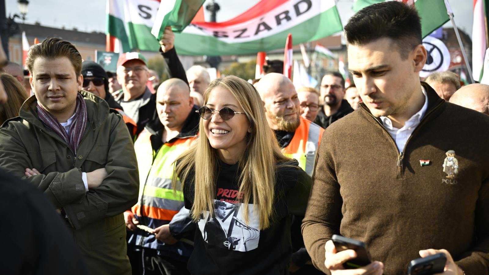 Úgy tűnik, a Fidesz nagy reményeket fűz Szabó Zsófihoz, a Digitális Polgári Körök első első nagygyűlésének egyik műsorvezetőjéhez, az MTI legalábbis külön képet adott ki róla, hogy a színésznő ígéretéhez híven megjelent a fideszes felvonuláson.