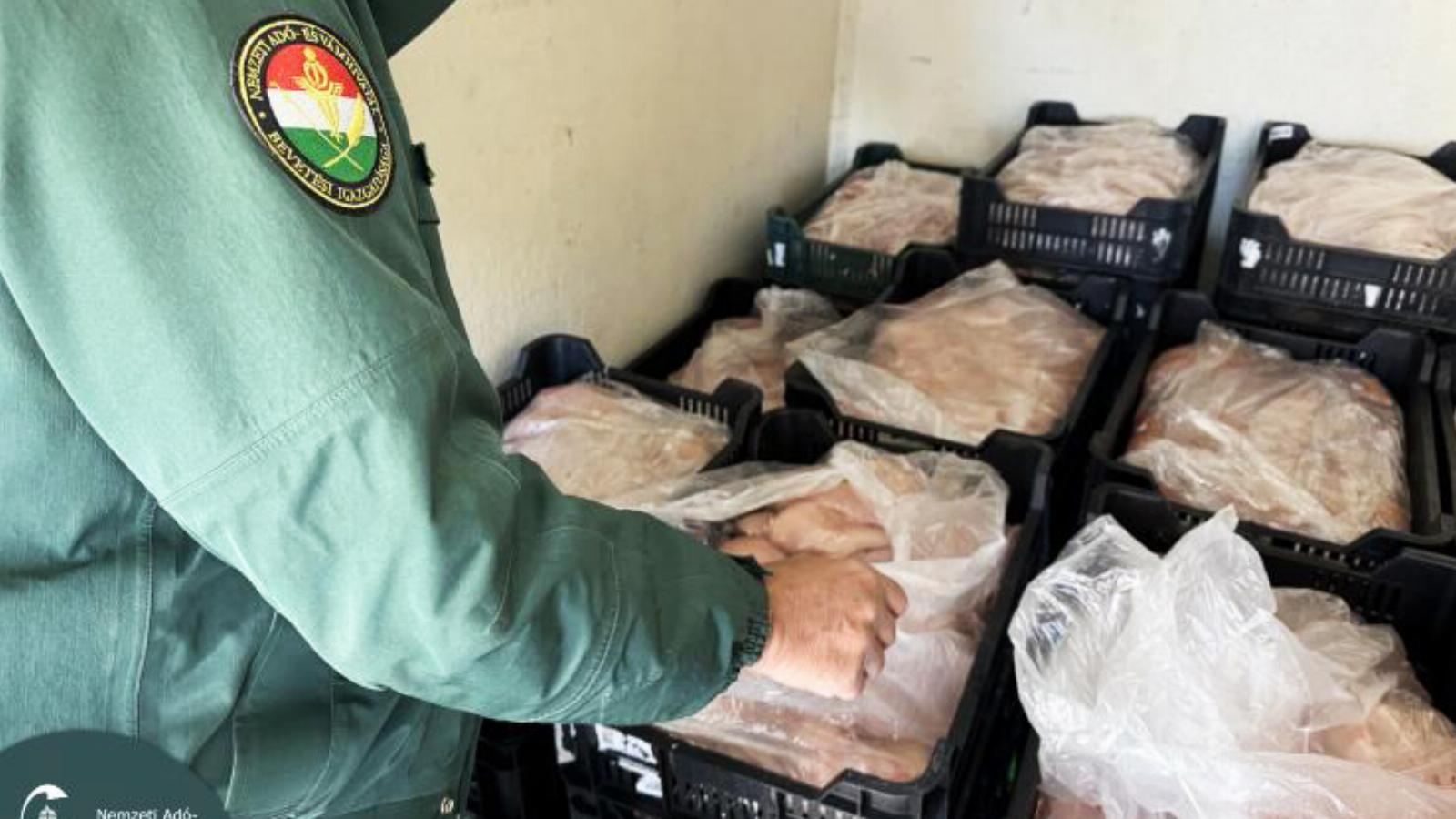 Azt írták, hogy a Magyarország és Szlovákia között közlekedő furgon 864 kilogramm csirkehúst szállított, és a hűtőberendezése működött ugyan, de a húsokon semmilyen jelölés nem volt, csupán egy sérült címke, amelyen a fogyaszthatósági határidő már két héttel az ellenőrzés előtt lejárt.