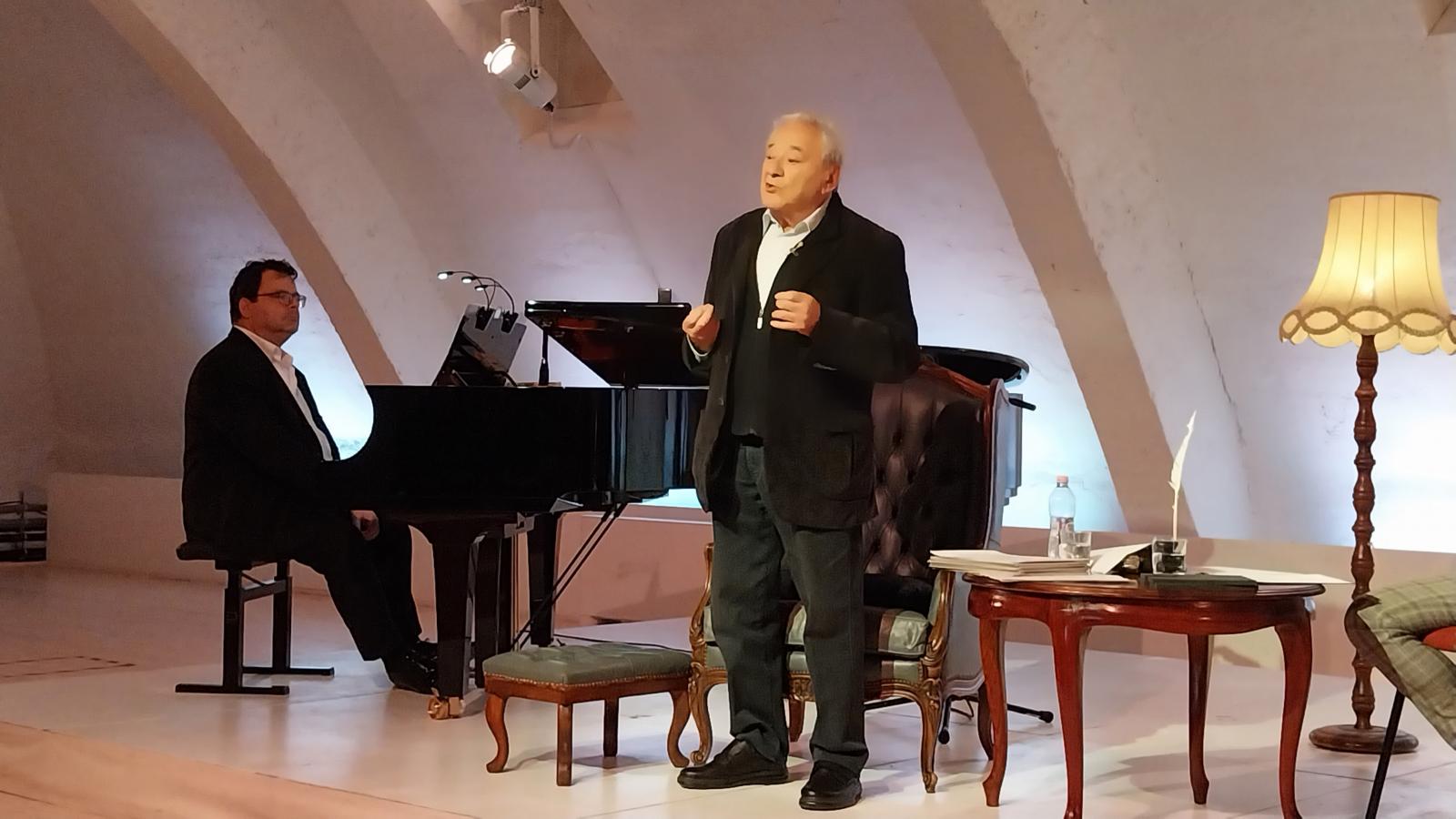 Valószínűbb azonban, hogy a közeg és a közönség nem engedi el. Változatlanul igényli bölcs műveltségét, nyitott szemléletét, világos, melengető megfogalmazásait művészetről, létezésről. Ezúttal egyik kedvenc fészke, az Operaház kérte fel, tartson pár szombat délelőttön előadást a Medgyaszay Teremben. És ha már versekről fog beszélni, szavaljon is el párat. Elvállalta, csak annyit kért, építsék be a programba Mozartot is.