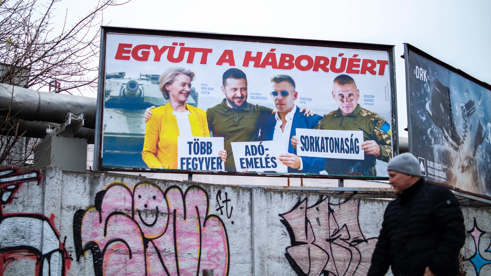 Orbán Viktor: Ha Ukrajna tagja lesz az Európai Uniónak, beszélhetünk arról, hogyan adjunk pénzt, de ez az én életemben nem fog bekövetkezniMikecz Dániel szerint a közvetlen veszélyérzet tompulásához más tekintetben is alkalmazkodott a Fidesz. Kiterjesztette a fenyegetettség forrását, így az ma már nem csupán a háború vagy az országot abba belesodró ellenzék, ahogy a 2022-es választási kampányban volt. A ciklus elején már az Oroszország elleni EU-szankciók is bekerültek ebbe a körbe, majd a megtámadott országból, Ukrajnából lett kvázi agresszor. Bár a Fidesz kommunikációjában már 2022-ben is megjelent Volodimir Zelenszkij ukrán elnök, mint aki be kíván avatkozni a választásokba, időközben még hangsúlyosabb ellenségkép lett Ukrajna. Az ukránok mint maffiózók vagy mint a magyar emberek adataival visszaélni kívánó informatikusok jelennek meg. Az ukrán érintettség, titkosszolgálati kapcsolat vádjával kívánta a Fidesz hitelteleníteni a Tisza Pártot is – emlékeztetett egy másik aspektusra Mikecz Dániel.