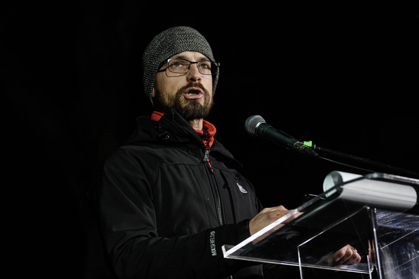 A tüntetést bejelentő Katona Illés jogász hallgató a Szlovákiai Magyar Fiatalok Tudományos és Kulturális Társulása, a Téka Peter Pellegrini szlovák elnöknek címezett nyílt leveléből olvasott fel. Abban azt írták, hogy a kifogásolt a múlt évben elfogadott törvénymódosítás korlátozza a tudományos kutatás és szólás szabadságát, kriminalizálja a történelmi kérdésekről szóló vitákat, ezért kérik a szlovák vezetőket, vonják vissza azt.