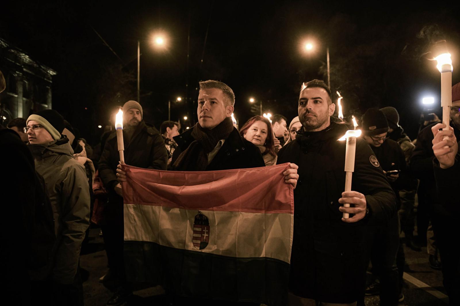 A Telex szerint Magyar Péter, aki a Tisza Párt több politikusával együtt fáklyákkal vett részt a tüntetésen, rögtönzött sajtótájékoztatót is tartott. Azt mondta, amennyiben áprilisban felhatalmazzák a választók a Tisza Pártot a kormányalakításra, fel fogják venni a kapcsolatot a szlovák kormánnyal. – Az új külügyminiszter feladata lesz, hogy magyarázatot kérjen a Beneš-dekrétumok megkérdőjelezését büntető törvényre, majd elintézze: helyezzék hatályon kívül a jogszabályt – tette hozzá, majd kiemelte, hogy a szocialista időkben sem történhetett volna meg az, hogy egy ilyen ügyben ne szólaljon meg a magyar kormány.