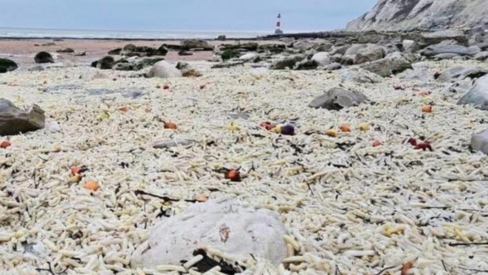 Egy helyi lakos, Joel Bonnici szombati sétája során döbbenten tapasztalta a helyzetet a Beachy Head sziklái melletti Falling Sands partszakaszon. „Kétszer is meg kellett néznem, amit látok” – nyilatkozta, hozzátéve, hogy a part úgy nézett ki, mint a Karib-tenger aranyló homokos strandjai. Néhány helyen a gyorsfagyasztott krumpli mintegy 75 centiméter magasan állt.
