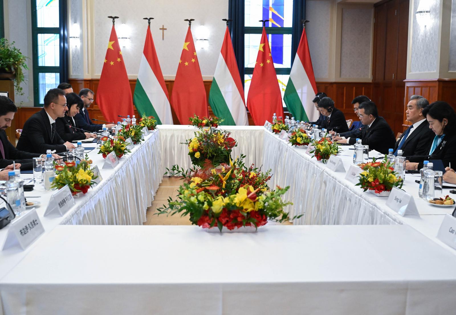 Szijjártó Péter ezután tudatta, hogy Vang Jivel áttekintették Európa és a világ biztonsági helyzetét is, és ezzel kapcsolatban leszögezte, hogy Magyarország büszke arra, hogy Kínával közösen tagja az ENSZ-ben a Béke barátai csoportnak. Hálásak vagyunk a kínai kormánynak a békeerőfeszítéseiért, és hálásak vagyunk azért, hogy a kínai kormány a béke mellett áll ki Ukrajnában - mondta.