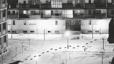 Lent a hóban ténfergő és alvó emberek. Az utcai lámpák pislákolnak. Az elektricska sínpárját követő fénysor viszont rendületlenül világít, és belefolyik egy nagy máglyaszerű fényorgiába: