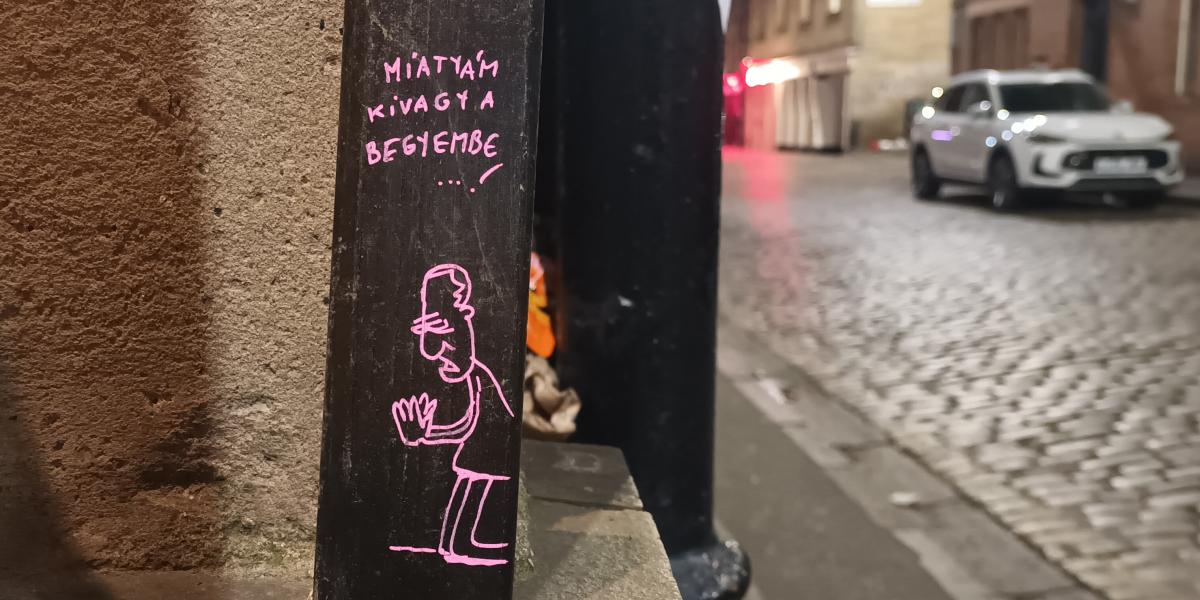 Edinburgh-ben „a magyar Banksy” helyi híresség lett, miután városszerte otthagyta kéznyomát, képeit sokan gyűjtik, keresik, ma már galériákban is árulják.