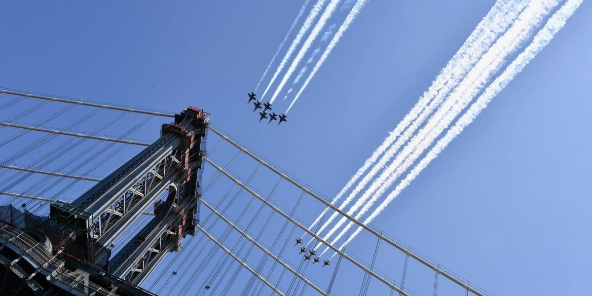 Az amerikai haditengerészet Blue Angels és a légierő Thunderbirds nevű műrepülőcsapata különleges bemutatót tartott New York felett. A fegyveres erők az új koronavírus-járvány idején a közösségért helytálló dolgozók előtt tisztelegnek az amerikai koronavírus-járvány gócpontjában.