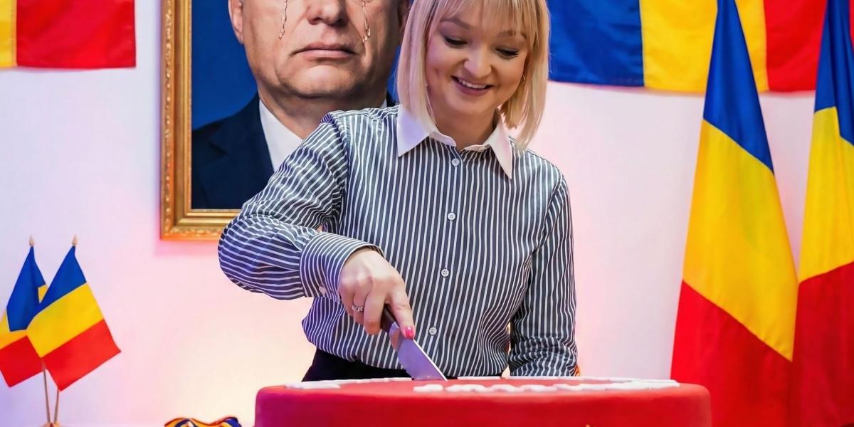 Síró Orbán-kép alatt szeletelt fel egy magyar nemzeti szinű tortát George Simion pártjának képviselője