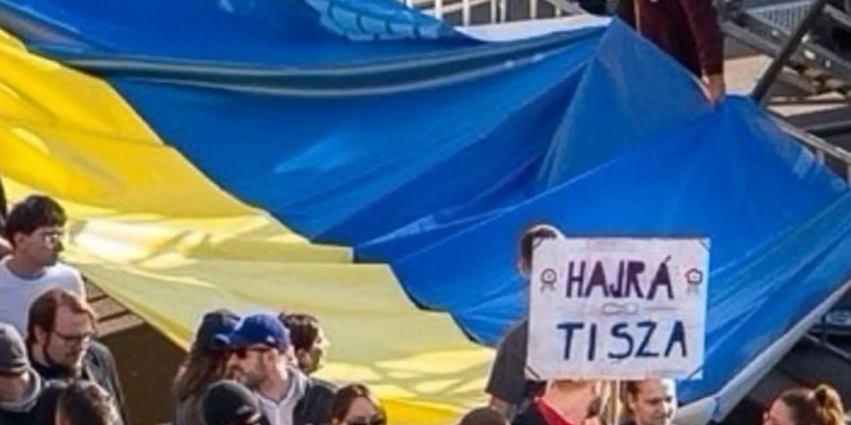 Minden jel szerint szervezett provokáció volt a Tisza Párt tüntetésén megjelenő hatalmas ukrán zászló